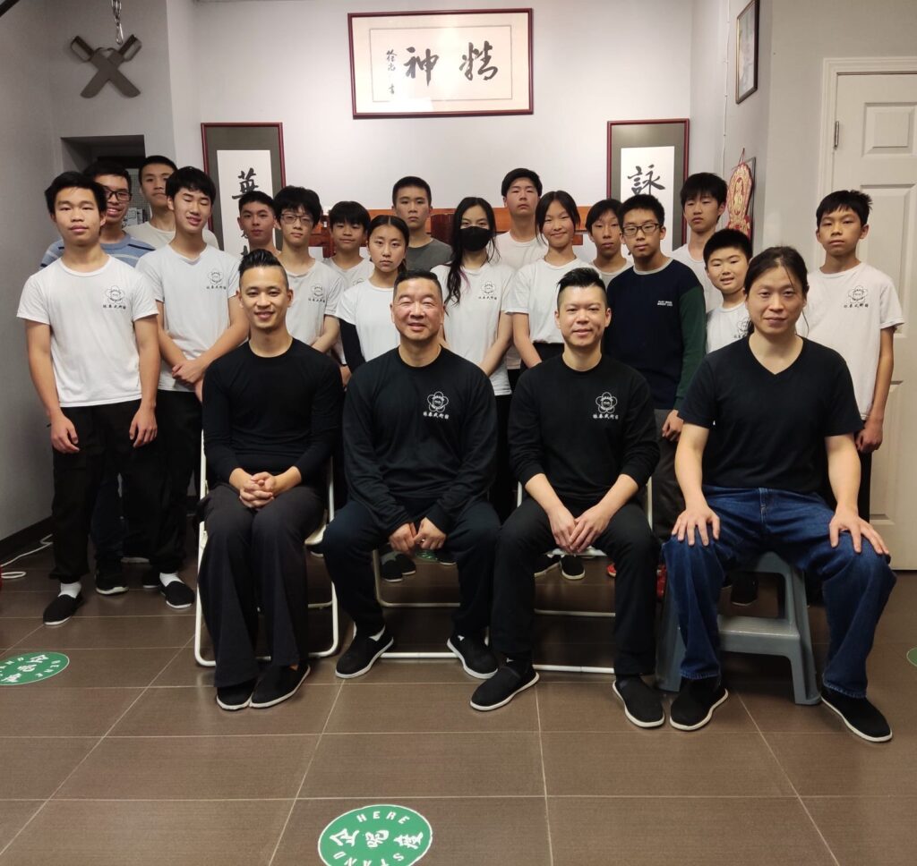 Pictured above: Sifu Lit (second from left), Sifu Julio (second from right), Sifu Matt (left), and Sifu Chung (right) with the teenage students.